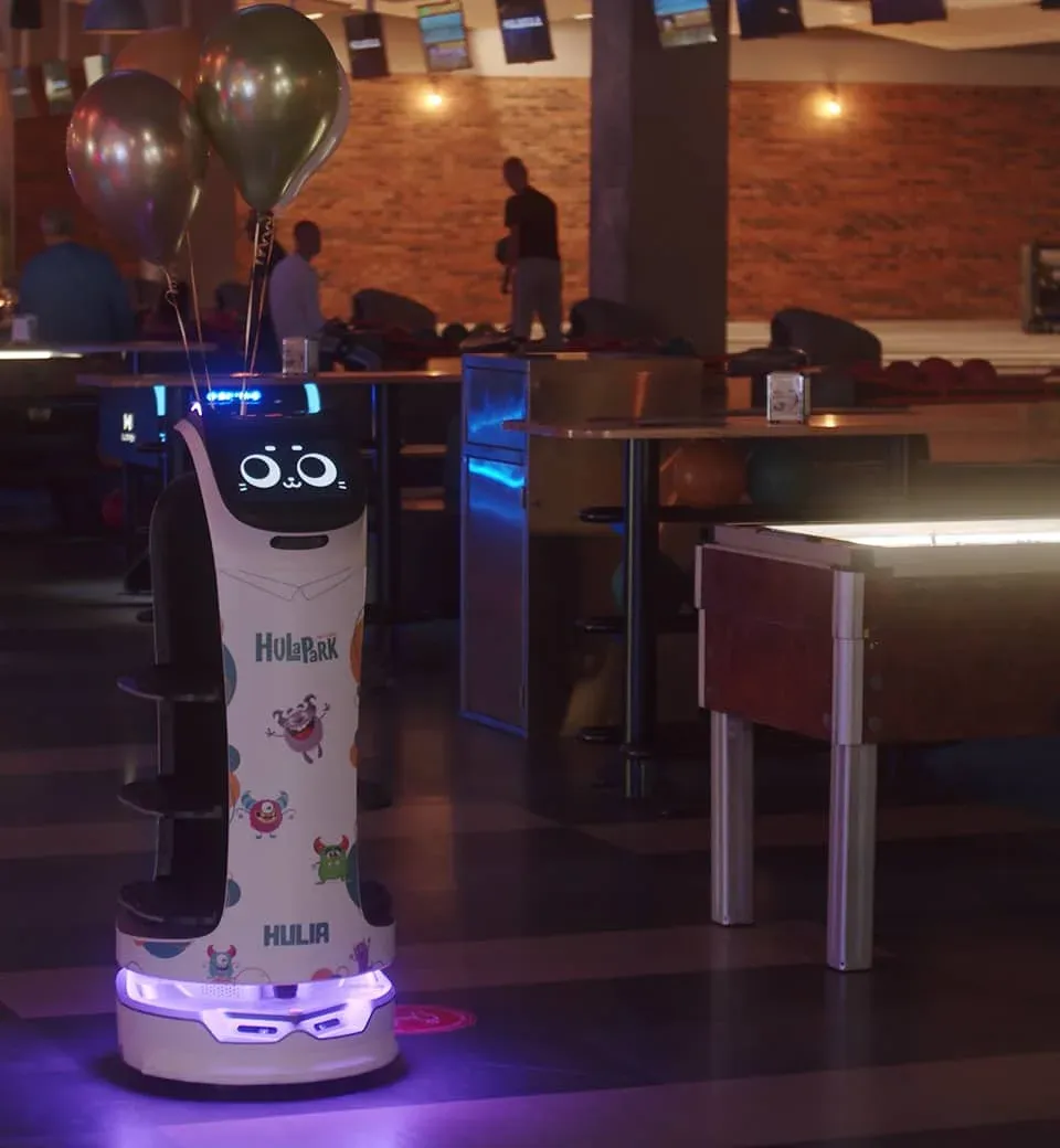 • Reklam ve teslimatı 18" reklam ekranı ile birleştirir, özelleştirilebilir promosyonlar sunar. • 4 ayarlanabilir tepsi ile 40 kg taşıma kapasitesi. • Çorba ve içeceklerin stabil teslimatı için sıvı tespiti. • Tepsi tespiti ve yanlış alma uyarıları içerir. • Sesli ve dokunmatik etkileşimli sevimli tasarım.