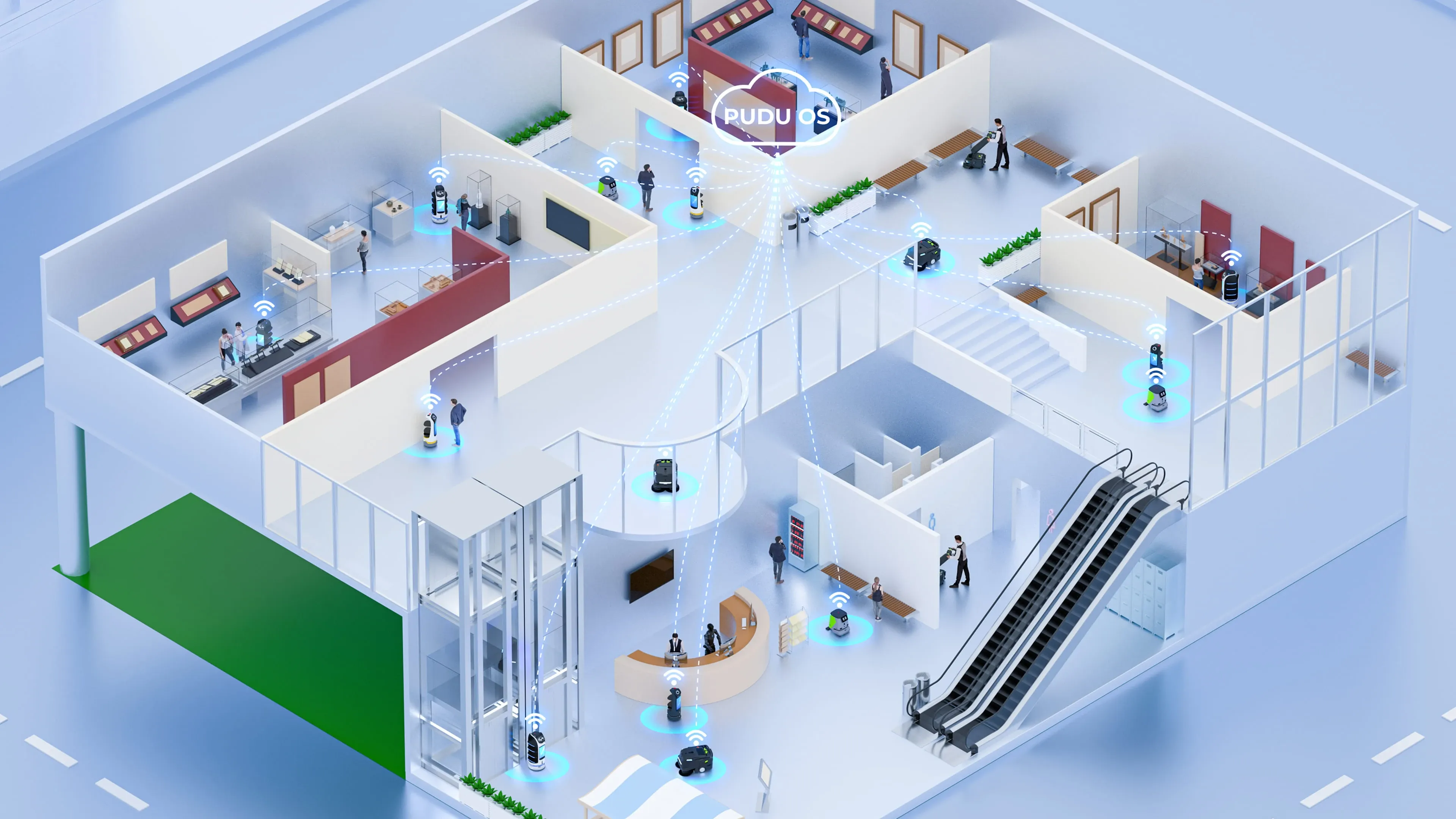 • Halı süpürme ve sert zeminlerde ovma ve toz paspaslama için 4’ü 1 arada çok fonksiyonlu temizlik robotu. • Verimlilik: ~700–1,000㎡/saat. • Özellikler: otomatik şarj, otomatik su dolumu ve boşaltma, asansör kullanımı.